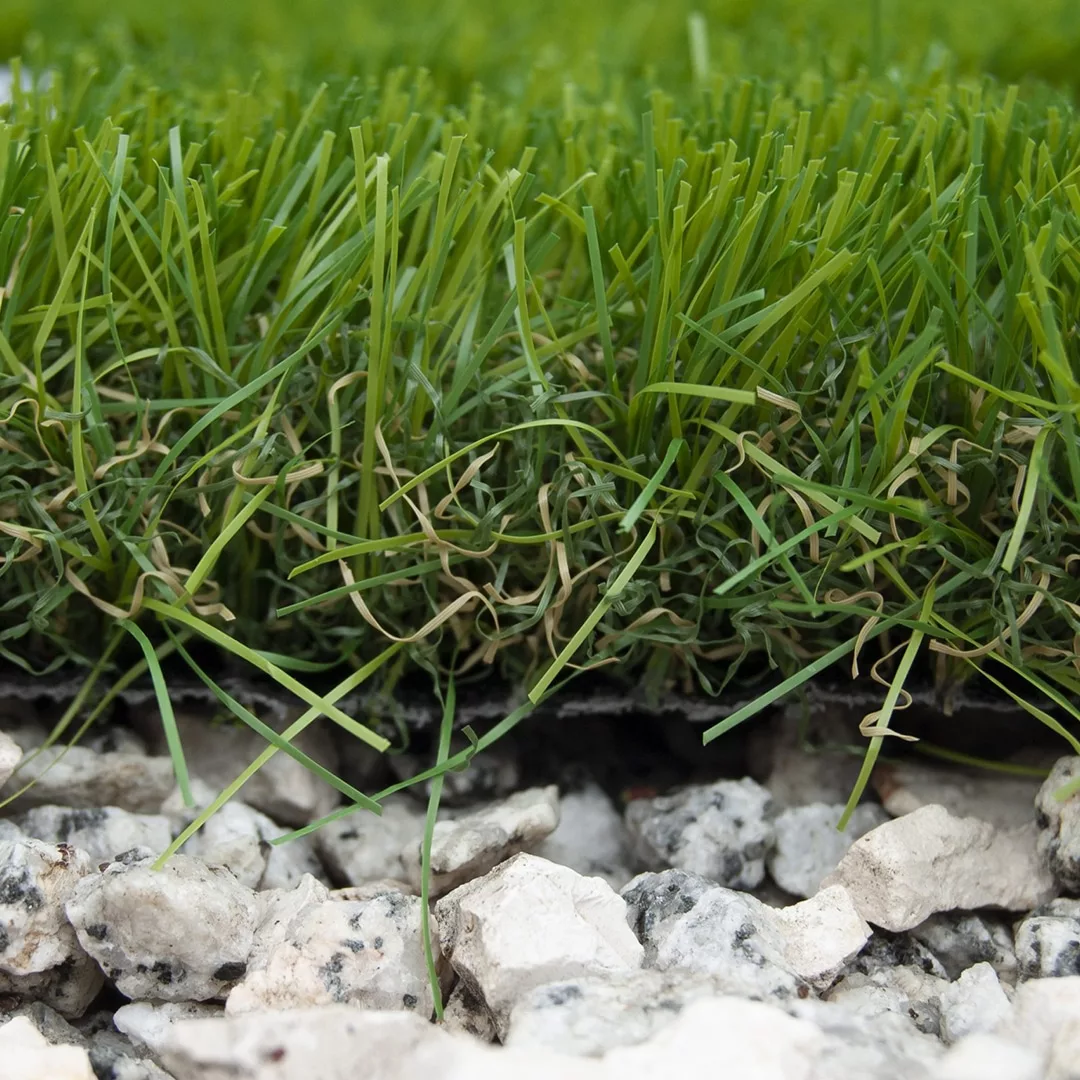 Su altura de fibra de 40 mm y excelente densidad de 25.200 puntadas/m2, además de la gran calidad de su hilo, ha permitido crear un césped extraordinario de gran suavidad, muy mullido, con gran capacidad de recuperación de la pisada, tacto agradable y gran resistencia. Para los hilos rectos se han empleado monofilamentos planos de primera calidad, que da como resultado un producto muy confortable, natural y fresco, gracias a sus tonos verde esmeralda y amarillo en el hilo rizado. Este césped se remata con una base de gran estabilidad dimensional.