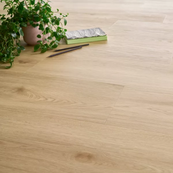 Este suelo suelo vinílico click combina la belleza natural de la madera con la durabilidad y funcionalidad de la tecnología de vinilo SPC (Stone Polymer Composite) con núcleo mineral y aislamiento acústico integrado (capa de 1 mm).