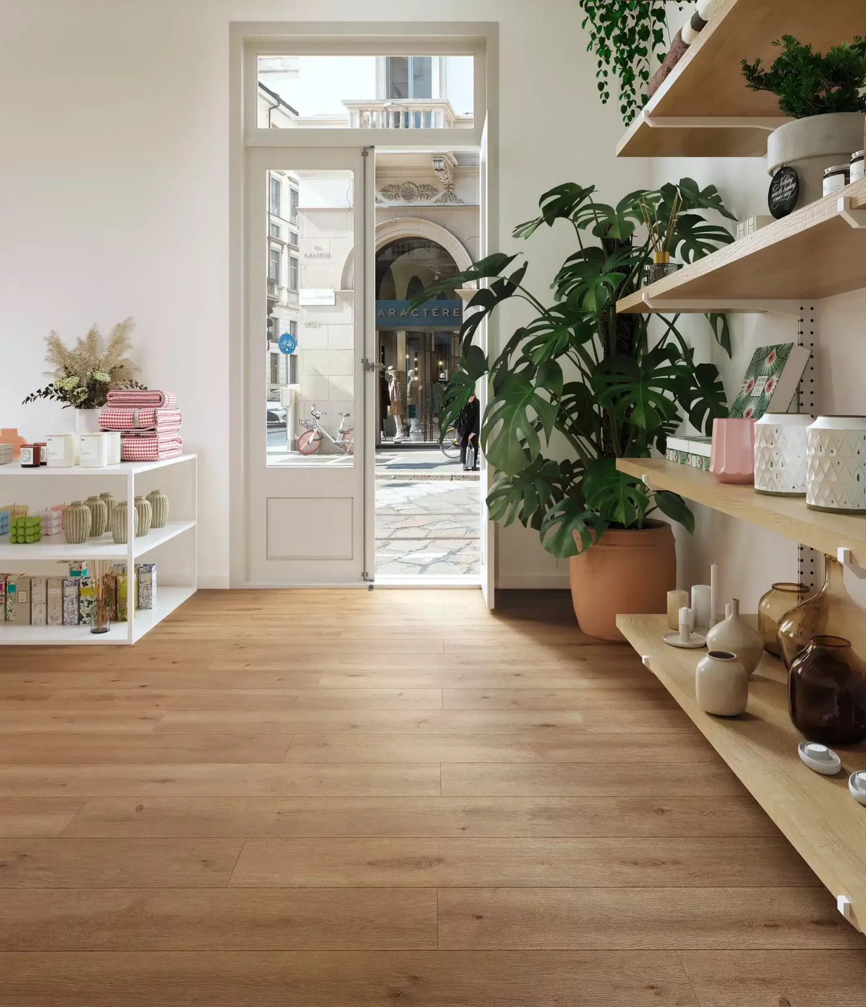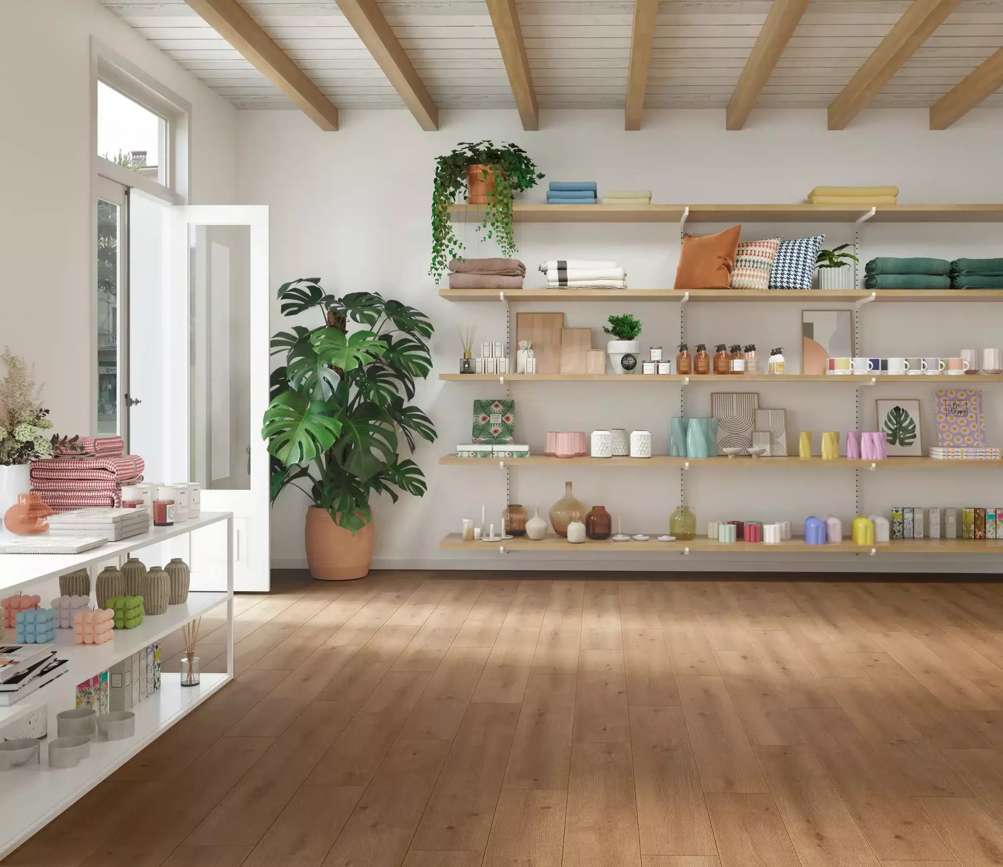 La colección Purefloor 8 tiene una clase de uso 32 y resistencia a la abrasión AC5, siendo apta para uso doméstico intenso, ¡incluído en cocinas! También es apto para un uso comercial normal que permite ser instalado en áreas como guarderías, oficinas, boutiques, recepciones de hotel, etc… En formato de lama de 1331 x 194 mm, con 8 mm de espesor, está compuesta por 14 diseños y 4 acabados, con una clara apuesta por la familia de los robles, la madera en tendencia. Todos los diseños están disponibles con microbisel para aportar un mayor realismo.