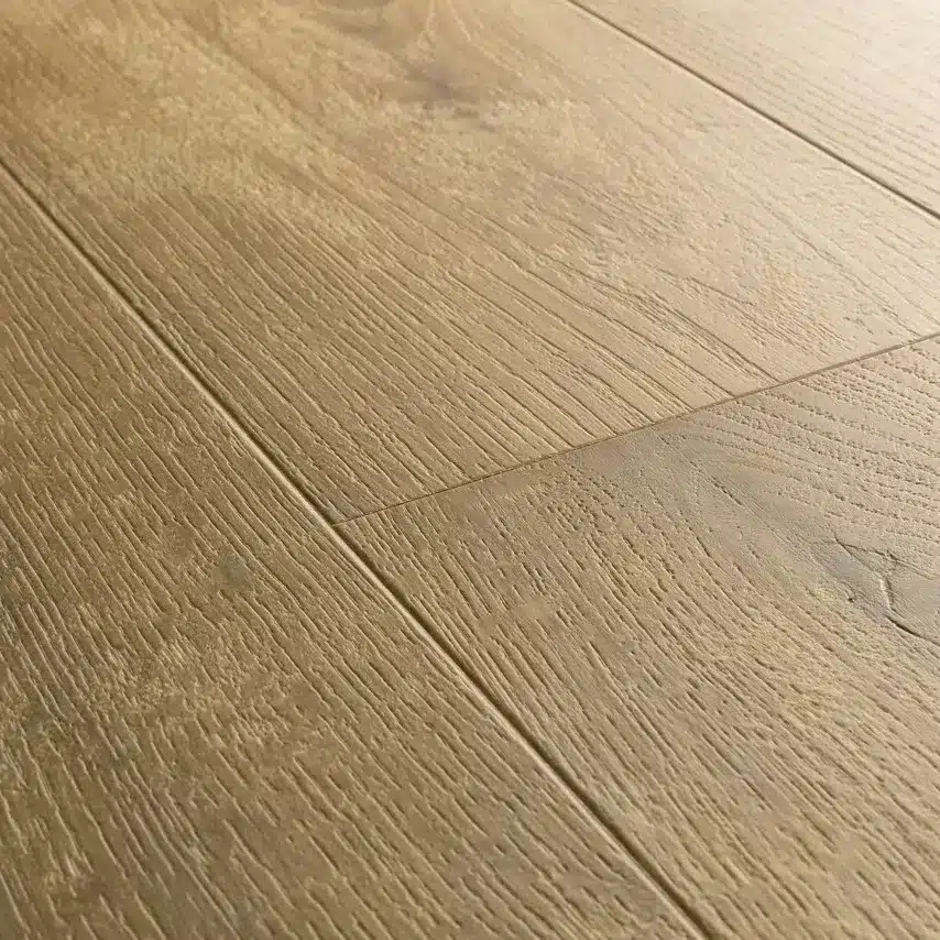 Los Suelos Laminados de la colección IMPRESSIVE de Quick Step cuentan con una resistencia a las rayaduras diez veces mayor que el resto de suelos, para que pueda disfrutar de un suelo bonito y natural durante más tiempo. Su superficie sellada ofrece una protección excelente contra la humedad que puedan causar, por ejemplo, bebidas derramadas sobre la superficie.