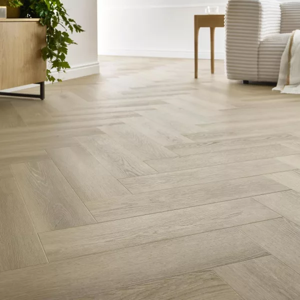 Descubre el suelo vinílico Roble Deventer de la colección Amaron Herringbone EIR, una opción que encapsula la modernidad en el espíritu de la clásica. Este suelo es la esencia del roble blanqueado, encantando con la apariencia clásica del parquet de madera en patrón de espiga.