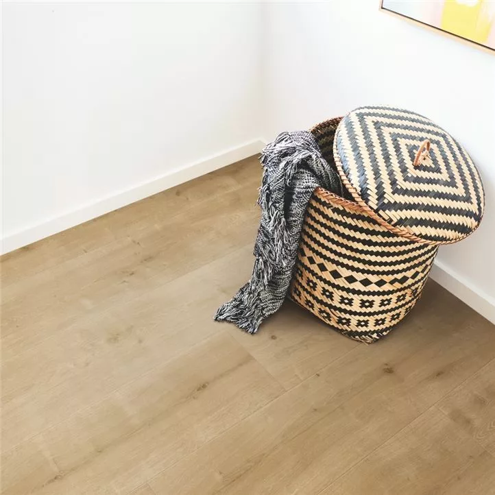 Un formato extra largo y el aspecto de los diseños naturales hacen del suelo laminado modelo Roble Esmeralda de la colección  Lunghezza de Balterio la elección perfecta para crear una habitación con una sensación de amplitud.