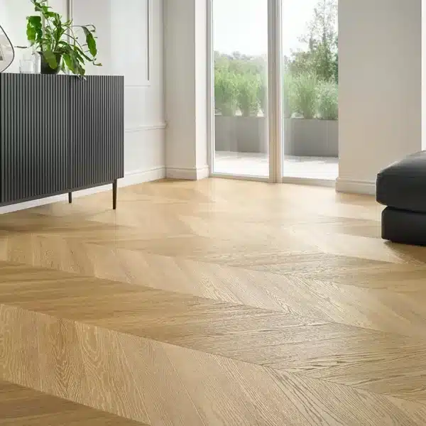 Descubre el suelo vinílico Roble Menor de la colección Amaron Chevron, una opción que combina la sofisticación de un patrón clásico con la calidez del estilo natural.Estos suelos de vinilo combinan el elegante motivo del chevron francés con la facilidad de instalación de un sistema de clic de cierre 5G. Su tono natural de roble, inspirado en el diseño escandinavo, es perfecto para interiores luminosos y minimalistas.
