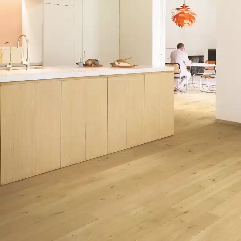 La colección de tarima flotante Amato de Quick Step es acogedora, única e impermeable. Estos suelos de madera resistentes al agua son un sueño para caminar, ya que combinan sin esfuerzo la durabilidad con la belleza natural. Exactamente el tipo de sofisticación que merece tu hogar y adecuado para cualquier habitación, incluidas cocinas y baños.