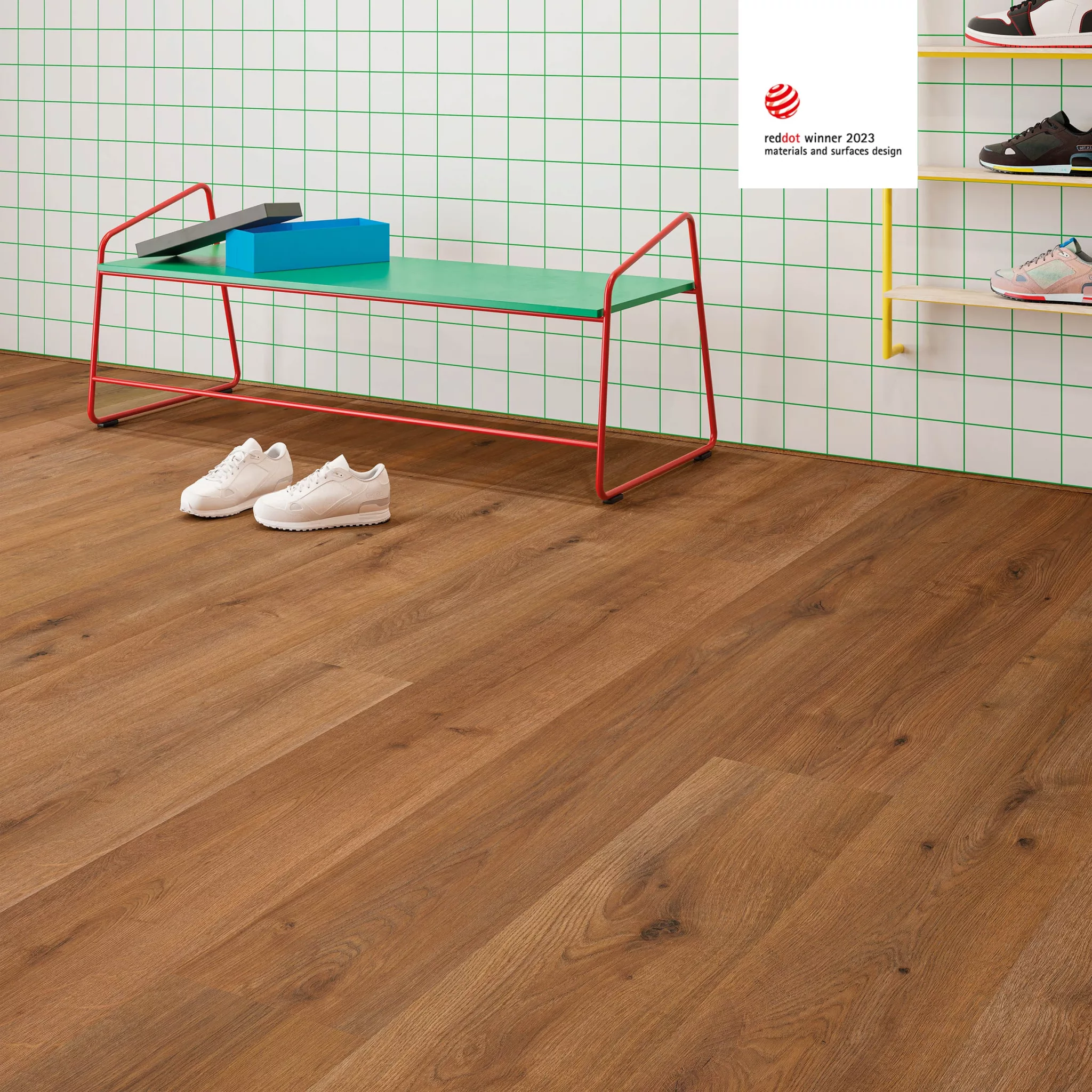 Con el Roble Vera Legado, de tono tostado, mantendrás la esencia histórica del ambiente y, si lo combinas con colores primarios, crearás una sensación fresca y alegre. Pertenece a a la colección XL Vera, de textura sincronizada y 24 lamas sin repetición.