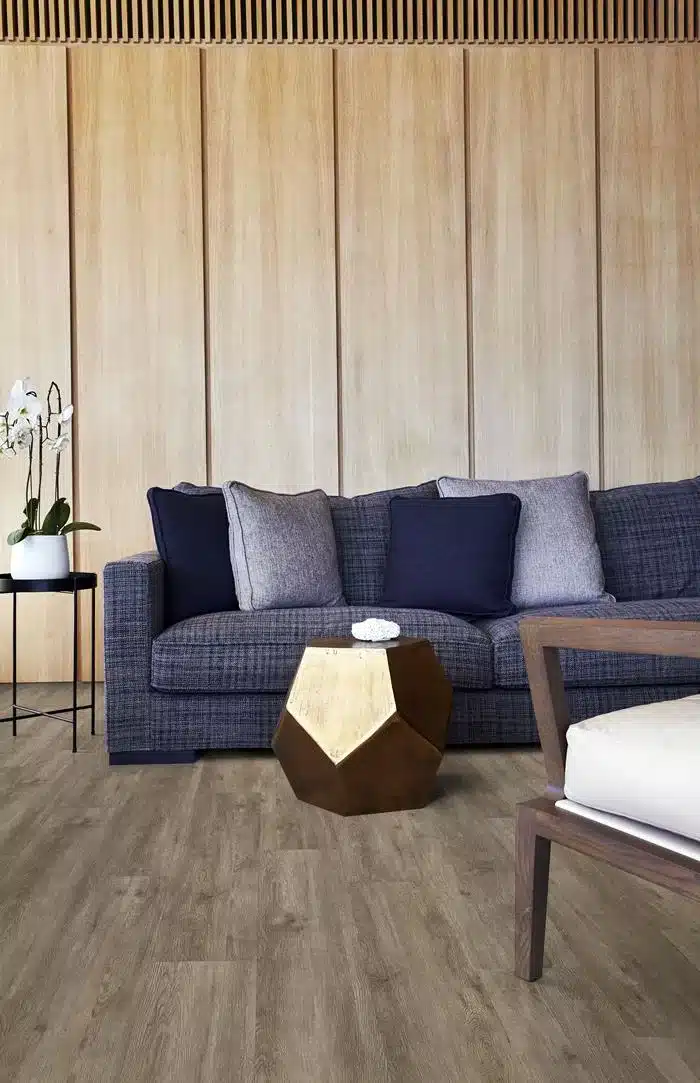 El suelo de clic Sarek de Kährs Luxury Tiles presenta hermosos matices marrones de arena y tierra, con toques de gris. Sarek es un suelo clásico y atemporal que complementa a la perfección estilos de diseño de interiores contemporáneos y tradicionales.