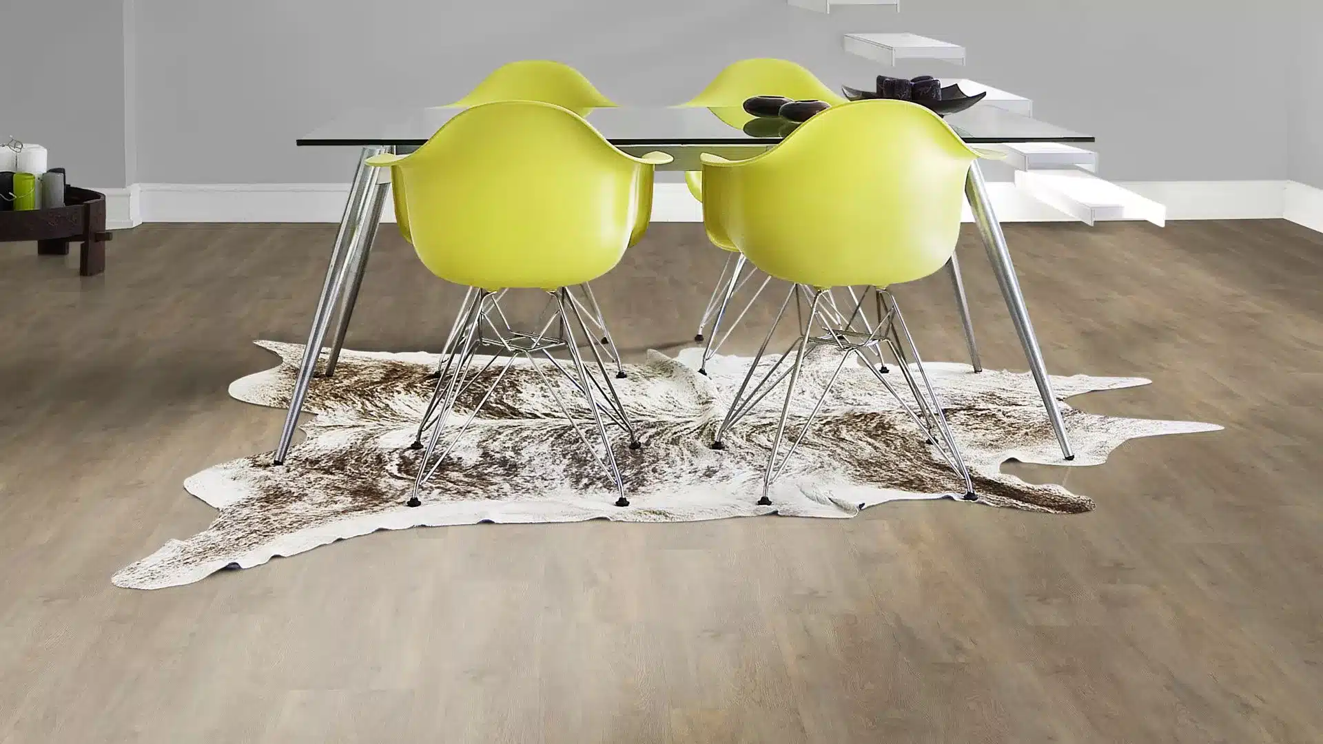 El suelo clic Taiga de Kährs Luxury Tiles se caracteriza por sus cálidos tonos marrones y reflejos grises, creando una atmósfera acogedora en cualquier espacio. Sus características naturales, como nudos y grietas, realzan su aspecto auténtico.