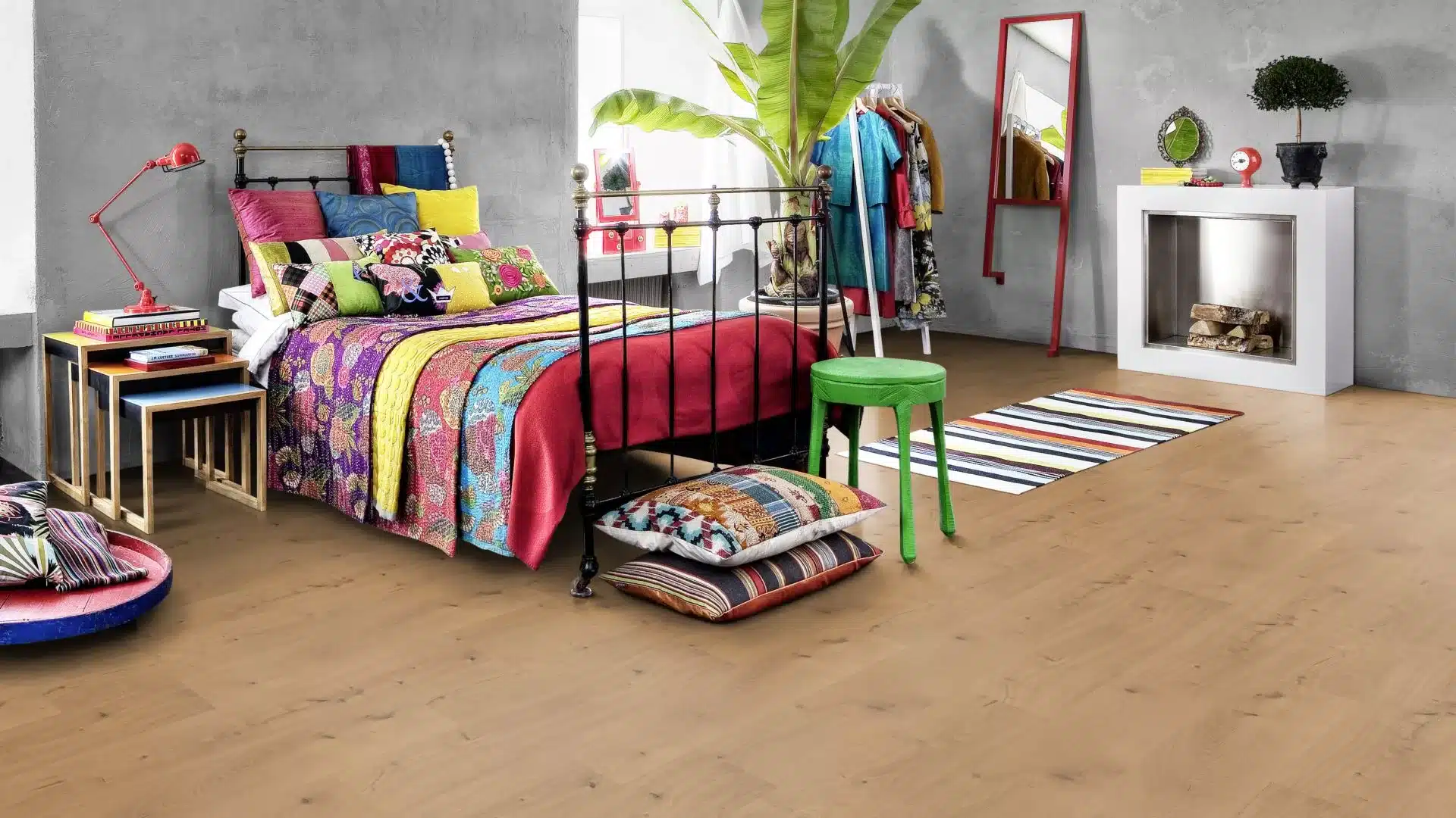 Para instalación sin adhesivo en viviendas y espacios públicos. Máxima durabilidad y estabilidad gracias a su núcleo rígido y al exclusivo sistema de fijación 5G, que facilita la instalación mediante clic para suelo radiante con subsuelo incluido.